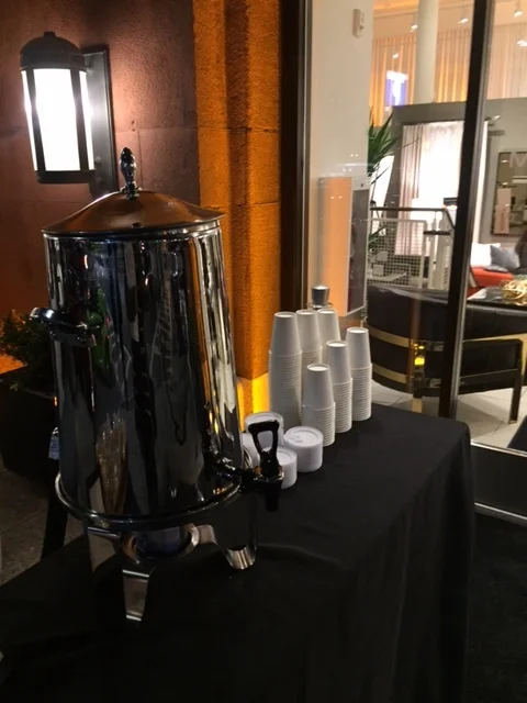 During the Fashion meets Furniture event held at the Mitchell Gold & Bob Williams Showroom in Boston, it was noted that there was a color theme going on with the lighting, the beverages and even the appetizers. Mimicking maple and oak leaves, on a beautiful Autumn day in New England, everything brought in for the party had a hint of harvest gold.