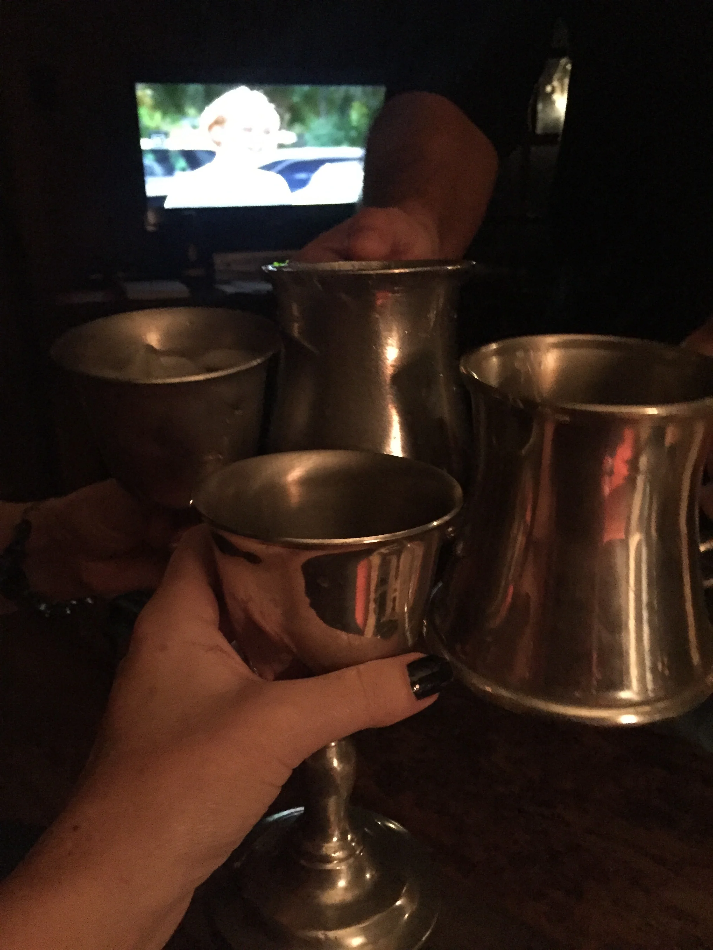An impromptu call to friends who live close by, turned out to be a wonderful birthday celebration. We enjoyed a toast to our 35 plus year friendship (we have known each other from elementary school and high-school), birthdays, and then sipped our libations out of pewter cups and tankards. How appropriate!