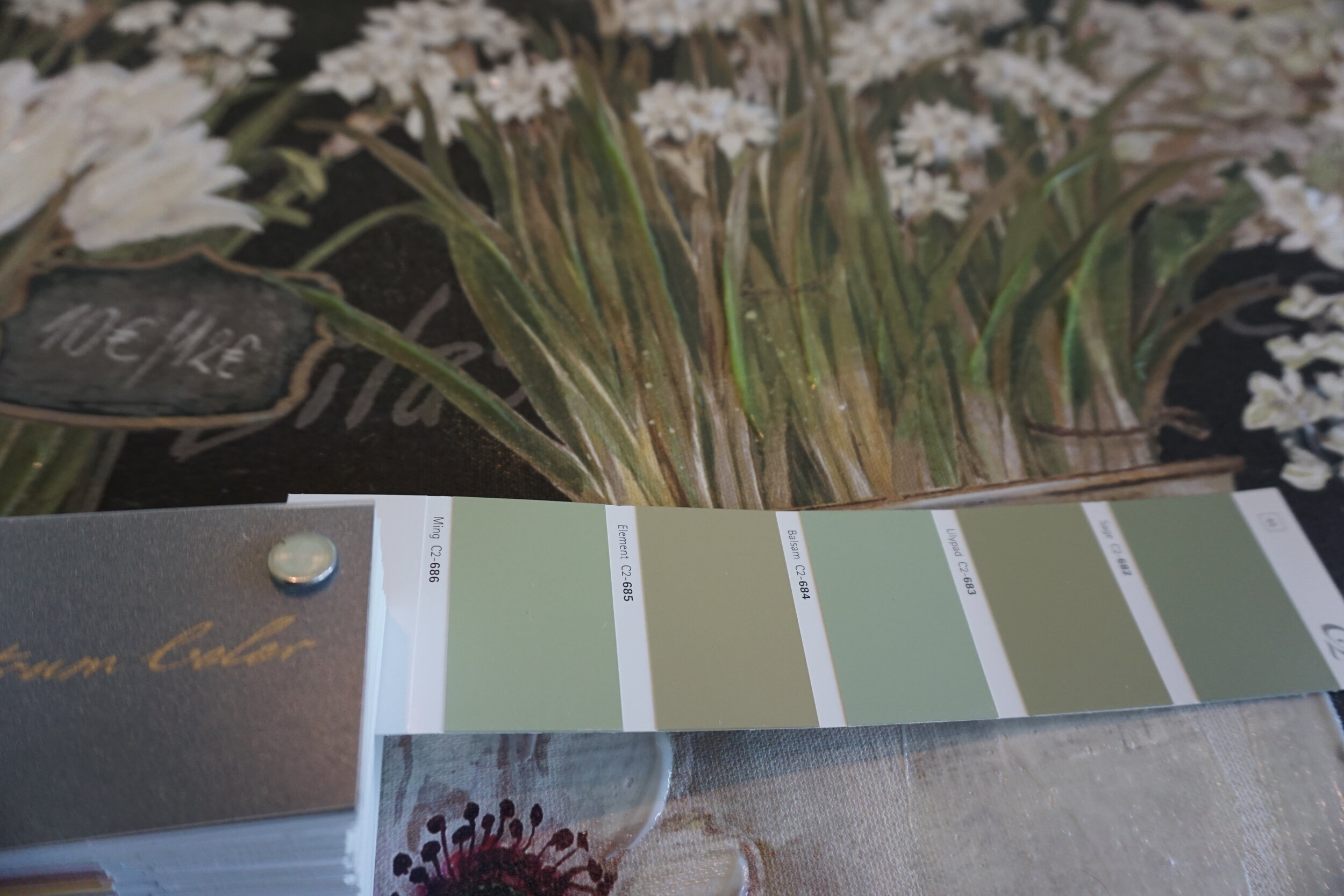 Once I found a color chip that matched a paint color in the painting, I would cut it out and then use a hole punch to view the color through it. I have been doing this for almost thirty years and I thought it was great when paint manufacturers started doing it on their samples. It’s so helpful!