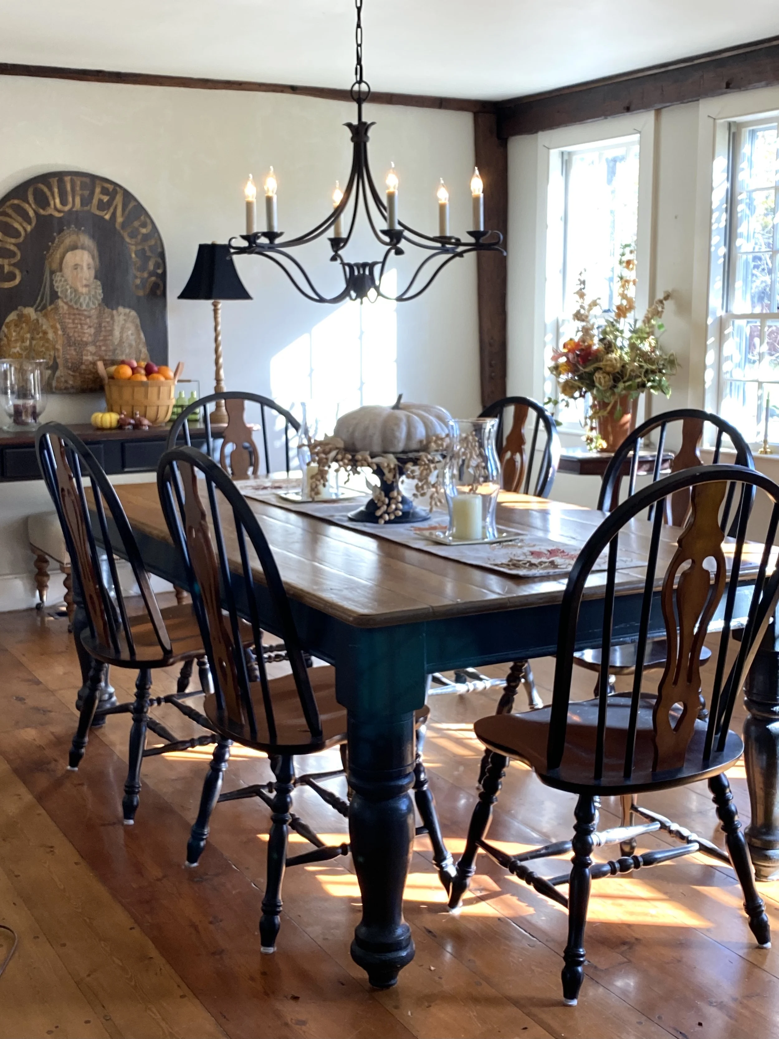 The photo above was taken yesterday soon after I wired the chandelier to work with a plug vs being hard wired. Once our electrician works on some other projects in the home he will re-install the light for me. The whole kitchen will be getting a remodel and things will be changing in this space too.