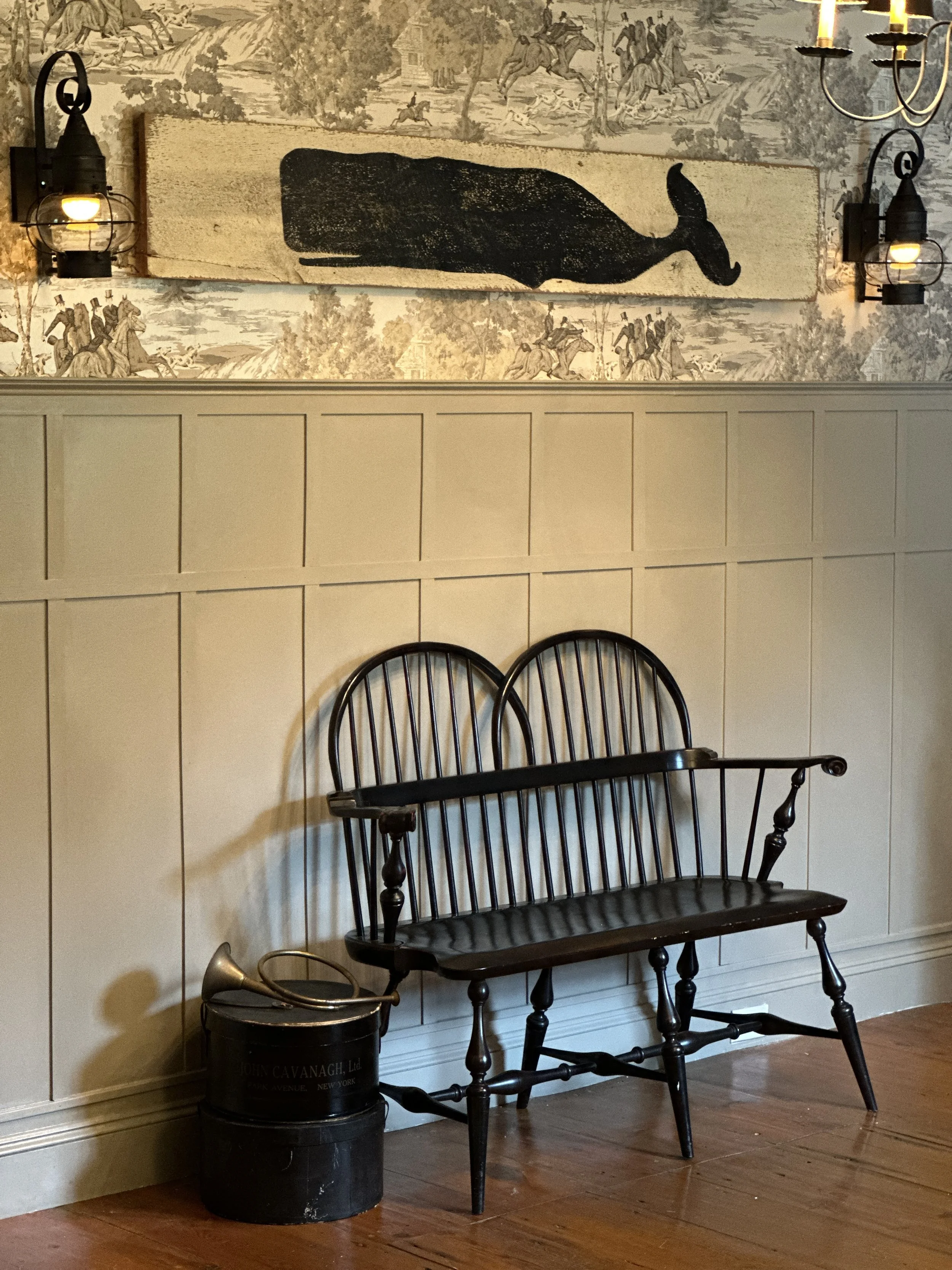 Wallpaper - Tally Ho by Sanderson Paint Rockport Gray by Benjamin Moore.