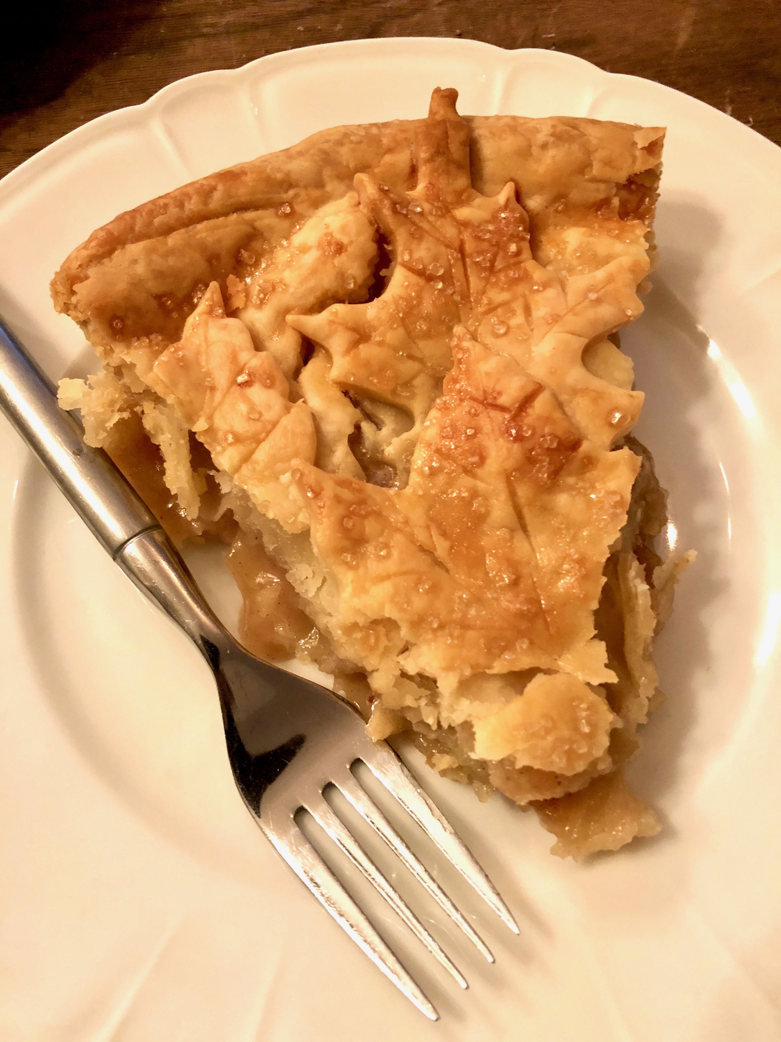 Here it is, our first New England apple pie of the season, but not the first this year. I had already made an apple pie a few weeks ago, during a visit to our Maine house; we both got a craving for my old New England apple pie recipe due to a drop in the temperatures and fall was in the air.