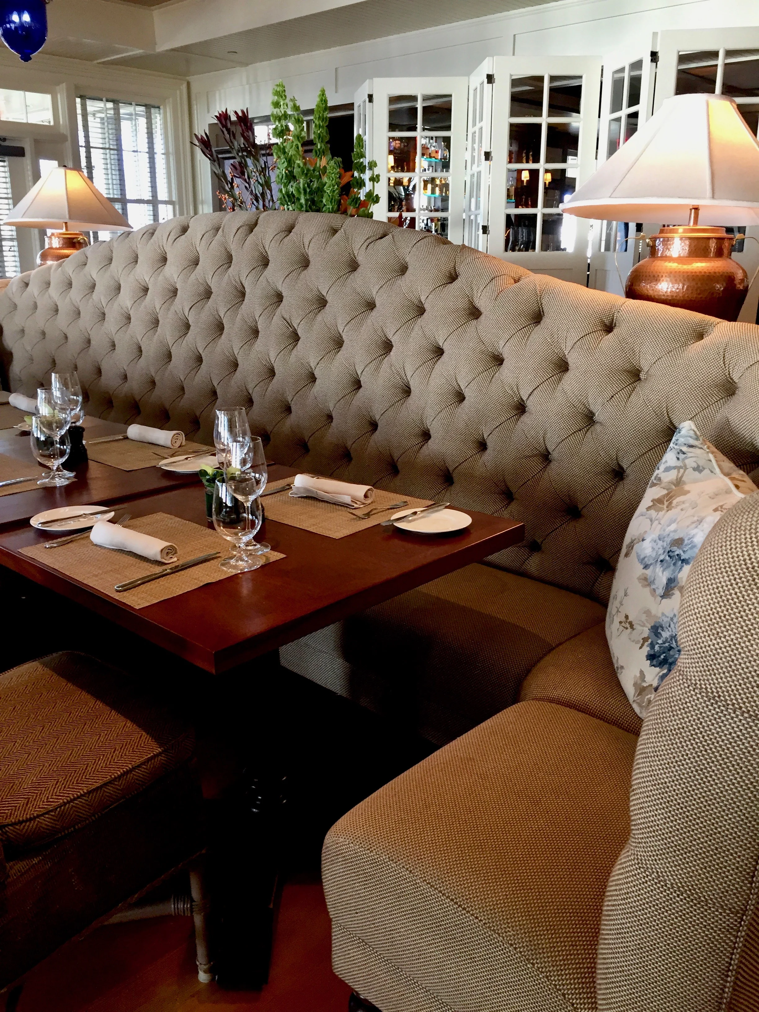 During the evening, the tufted seating was hard to see, so I was glad to have an early peek at this room before others were seated for breakfast.