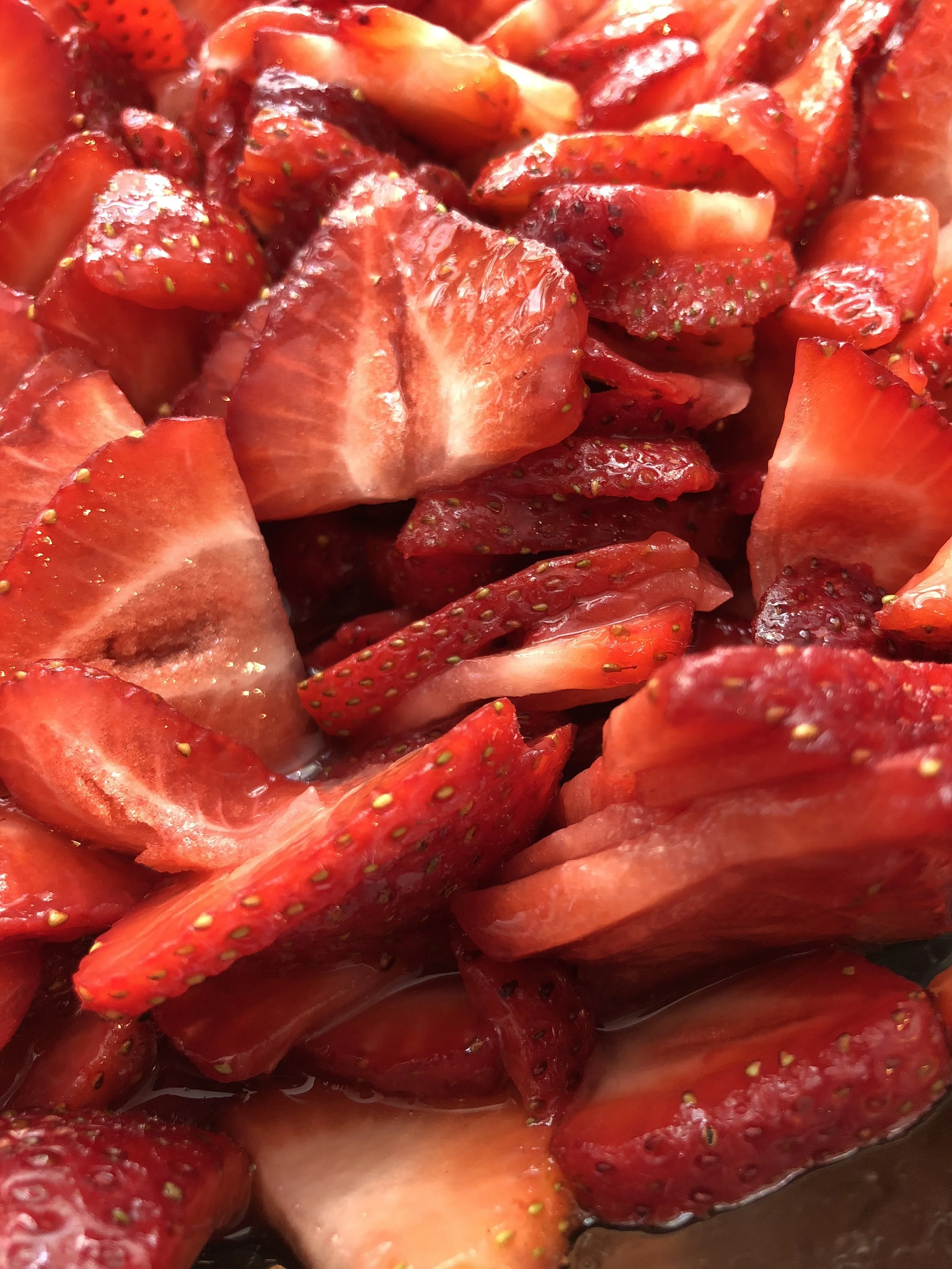 Note: for those wondering what I mean by macerating strawberries, I added sugar to the cut up strawberries to make them produce juice or a syrup. I wish I took a photo of all of the syrup, but the photo above shows a bit of it.