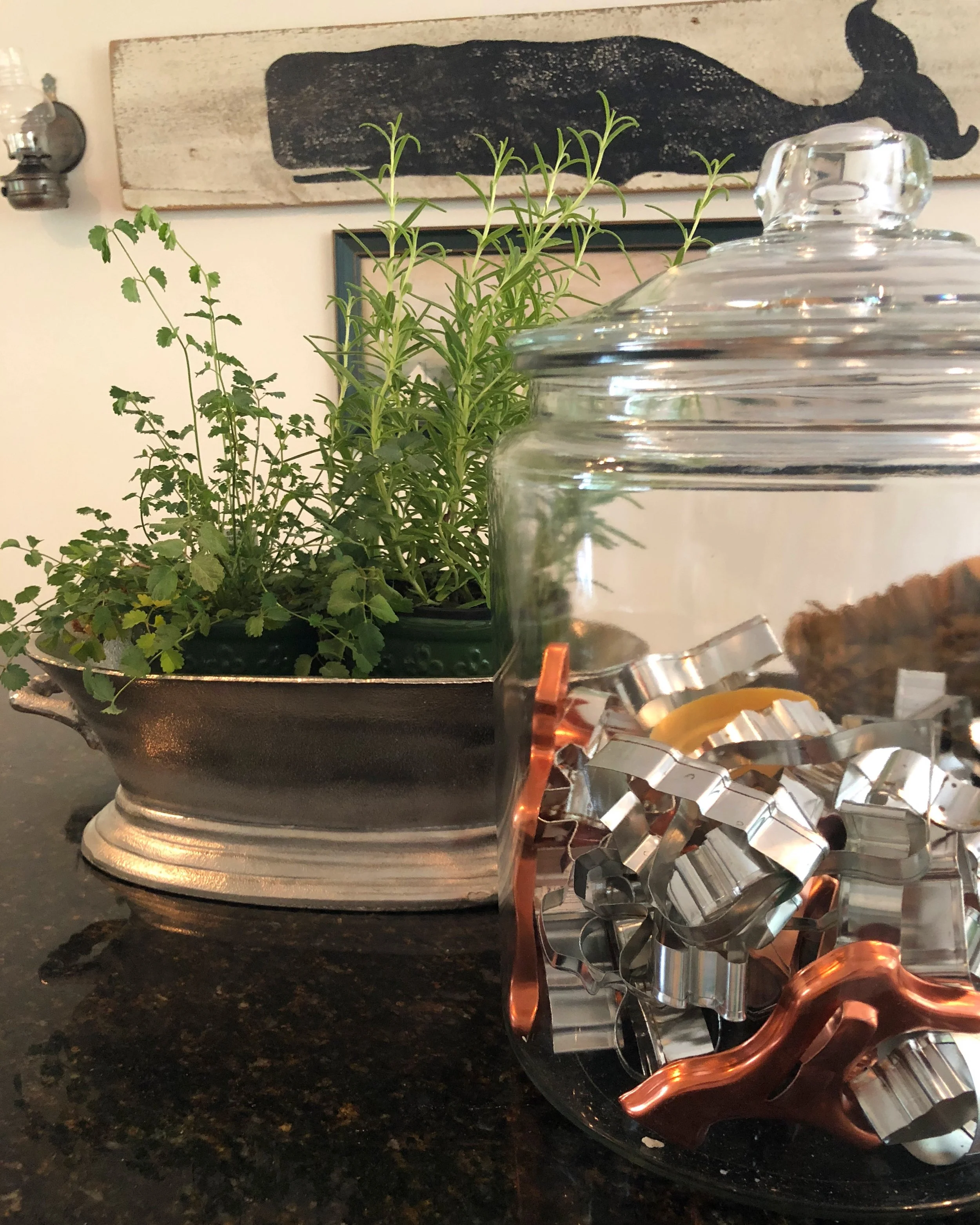 I love keeping my cookie cutters in this 2 gallon cookie jar. It is not only very functional it is decorative too! If you like this idea, large cookie jars can be found at many stores, including thrift stores like where I found mine, but you can also buy them here.